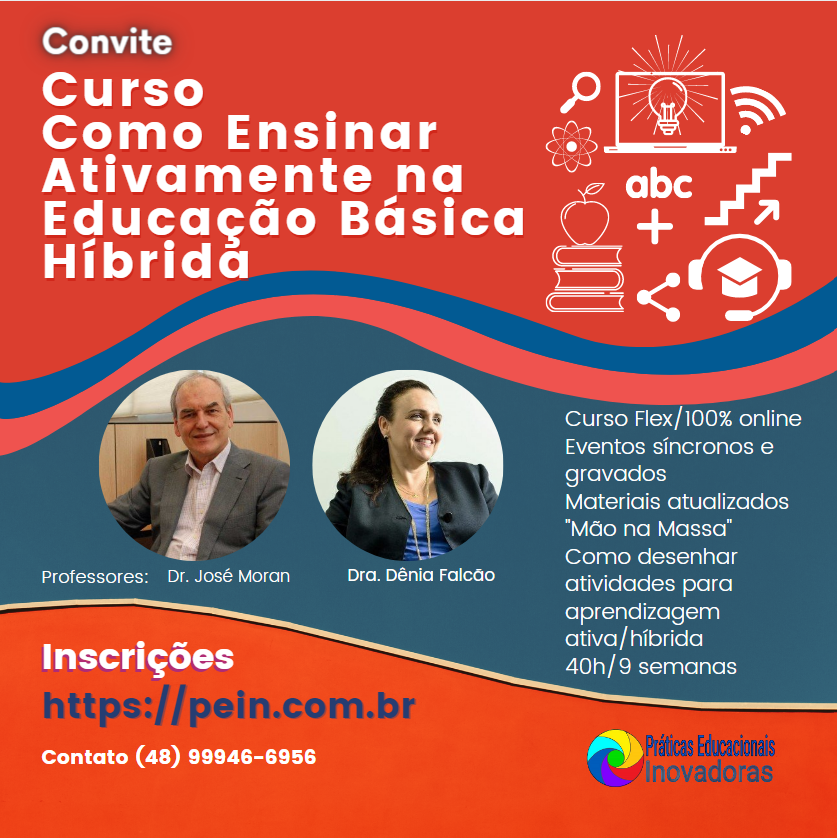 - Personalização: acompanhamento de cada professor, do seu projeto e dificuldades por dois grandes pesquisadores e especialistas: Professores José Moran e Dênia Falcão